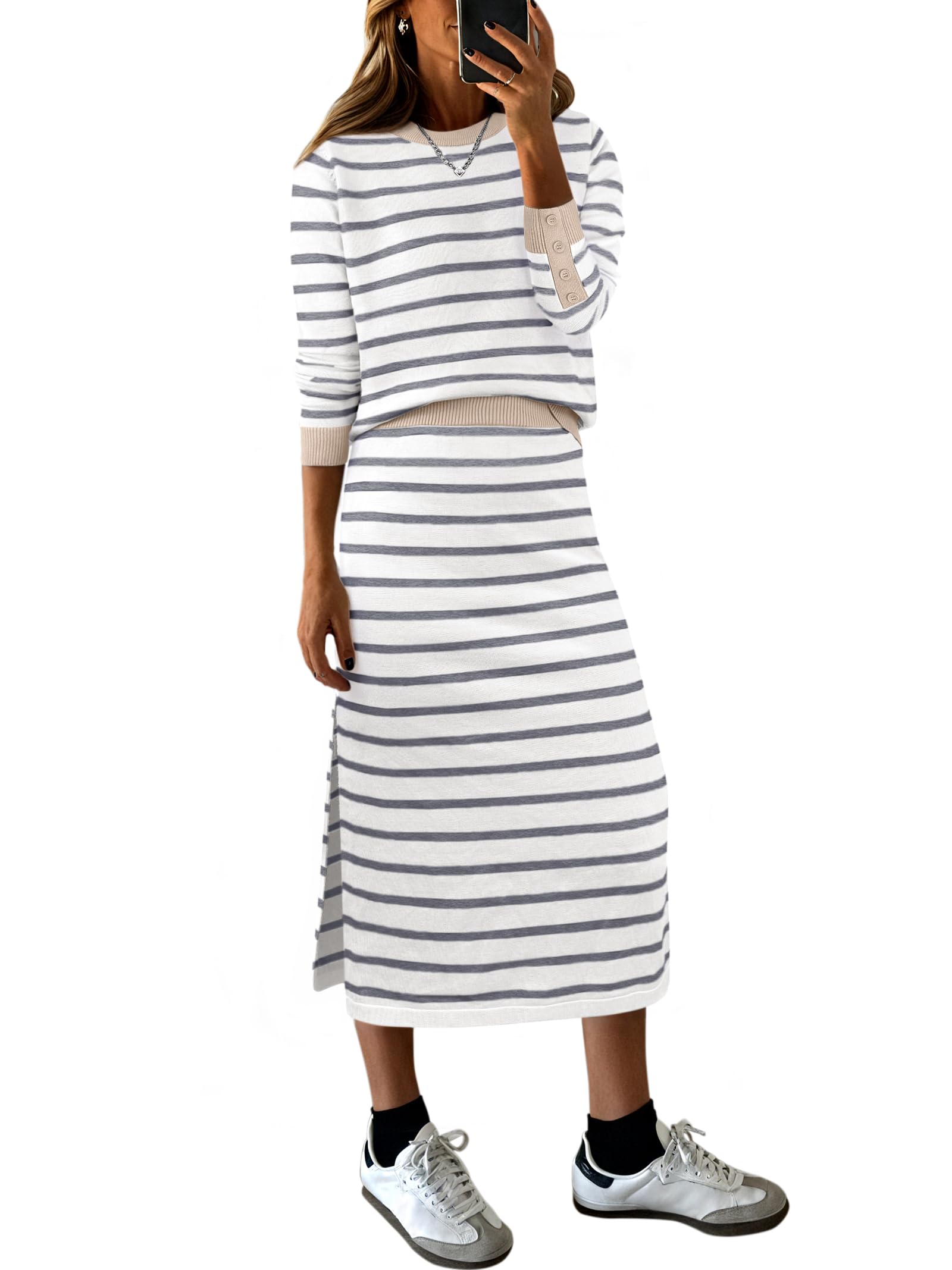 ANRABESS 2 Piece Skirts Sets For Women Fall Fashion 2025 Striped Sweater Midi Dress Knit Lounge Travel Outfits Winter Clothes